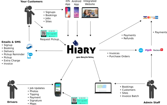 Hiary can offer solutions that are as simple as tracking what payment has been taken and how through to automatically processing payments during booking, delivery, pickup or any other workflow you might have.