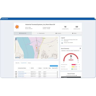 Reduce incident response time with quick access to relevant contaminant information, facility contact records and contaminant travel time estimates. Manage priorities, file attachments, and notes related to specific sites, all in one place.