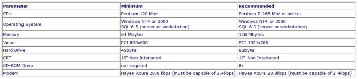 The Master Station software can be installed on standard personal computer workstations with the necessary resources. The minimum and recommended hardware requirements for running the Master Station software are:
