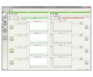 The workplace parallels the instrument setup with its two heating blocks with four measuring positions each, making it easy to set the test parameters and follow the progress of each sample.