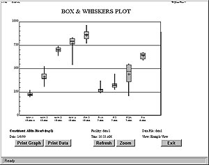 For instance, in deciding whether to construct a nonparametric or a parametric test, WQStat (unlike our Sanitas package) requires the user to manually test each data set for normality, and construct a statistical test based on those results. Plots are generated in single-plot format, and printed in the same manner. Sanitas`s Summary Tables and Batch report features are not available in WQStat Plus.
