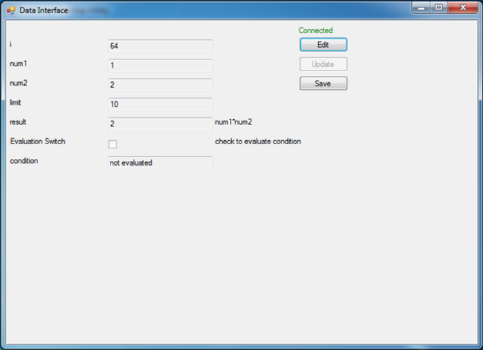 - View and change live variables in the data interface