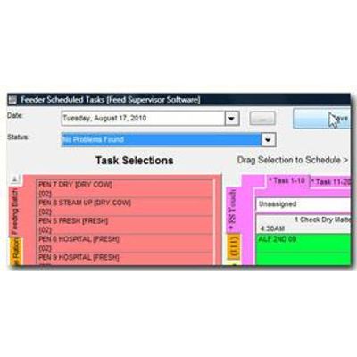 Start at your computer with an easy drag and drop screen to create your schedule. Copy a previous day`s feeding information to get a quick start or create an all new load schedule that maximizes your mixer capacity. Create customized tasks with detailed instructions. Schedule all of your employee`s tasks, such as weighing inventory, pushing up feed, and taking forage moistures.