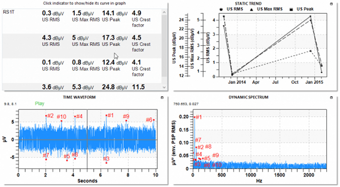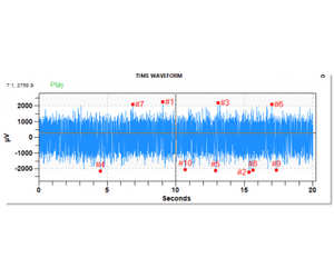 A new playback cursor travels in step with the signal allowing analysts to follow every click, pop, crackle, squeak, and rub. UAS3 automatically labels the 10 highest impact points of the signal.
