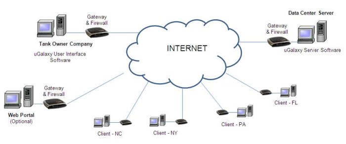 Can be customized to special applications, such as leakage detection, energy management, etc. The GPRS-based uGalaxy data management system offers a way for customers to monitor remote meters, such as flowmeters, temperature sensors, pressure sensors, level sensors, BTU meters, etc., in real-time fashion automatically and reliably. In addition, using an optional web portal software, clients can loginto their own account through the Internet anytime and anywhere.