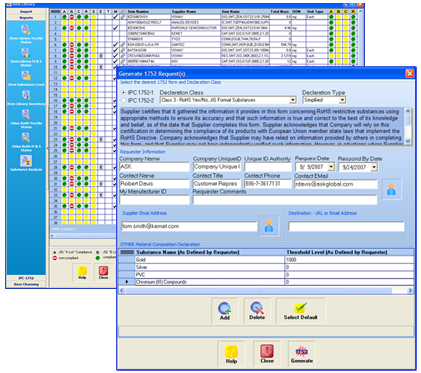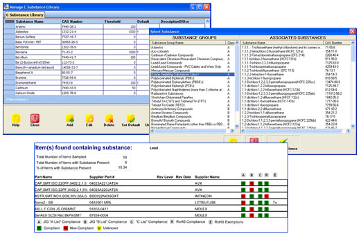 - IEC/EN62474 analysis and reporting- IPC 1752A analysis and reporting