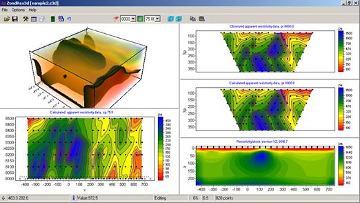 ZondRes3D is designed for 3D Resistivity, IP and especially electrotomography data interpretation. Program requirements include fast and powerful PC due to large volumes of data. ZondRes3D has same main features as ZondRes2d inversions.
