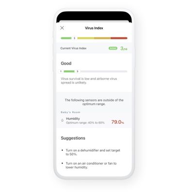 The uHoo Virus Index uses air quality data to provide you with actionable insights and tips to reduce virus risk. It is presented in an easy to understand score from 1 to 10.