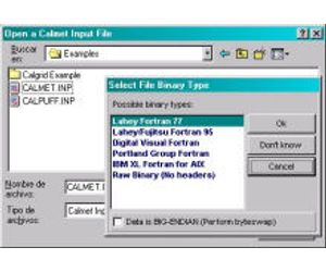 CalDESK will ask you for the binary type of the output files, giving the user the capability to work with CALMET, CALPUFF, or CALGRID models compiled on different systems, even Unix.