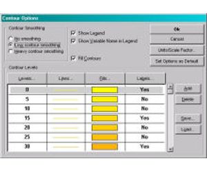 Visualization options for each graph type can easily be customized. Comprehensive options for contours, wind fields, etc., allow the user to represent model data as they wish.