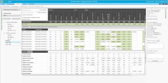 - Laboratory results (reports) upload automatically to LSPECS and reconcile with field details. Multiple laboratory report results can be viewed in a single chemistry exceedence table within LSPECS allowing rapid identification results of specific interest.