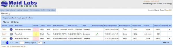application that allows users to remotely view on their computers, tablets or phones, the following data in real time: flows, levels, alarms and other important data. The information displayed is recorded by Maid Labs devices.