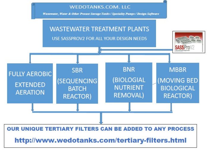 Wedotanks.com wastewater treatment plant design engineers work will work with you or your design consultant to construct almost any type wastewater treatment processing tanks including: