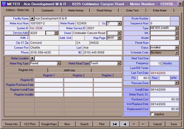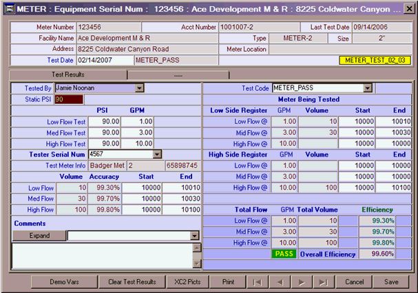 Schedule maintenance and testing of large and small meters. Track the complete history and costs from purchase to replacement. Record accuracy tests at different flow rates & pressures. Maintain records of repairs done and replacements made. Report any aspect or status of your program. Remote/Field Data Entry and Synchronization with: XC2 DataSynchPro - Remote Data Entry/Synchronization - LAN/Wireless/Internet.