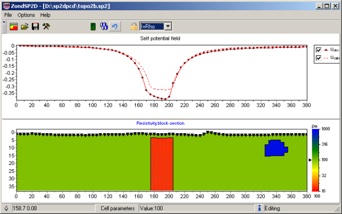 As the general task of the program is inversion of resistivity and charges, some variants of inverse problem decision are realized in ZondSP2d, basic of them are: smoothing inversion – to get smooth model and focusing — to get piece-smoothed model of petrophysical parameters with depth.