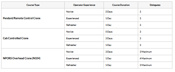 We can also provide NPORS N104 Overhead Crane training as an alternative route.