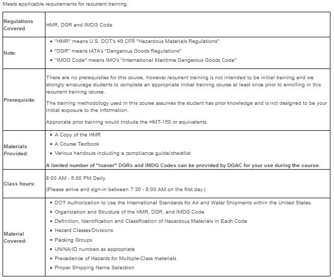 This 2 day course reviews the basic skills needed to prepare, offer and accept shipments of hazardous materials by ground, air and water. As an alternative to taking HMT-115, HMT-215 and HMT-315, HMT-155 reduces training costs, travel expenses and time away from the office. Instruction will focus on non-bulk packages.