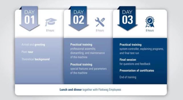 The goal of our training is to train your employees specifically on the new machine and its individual components.