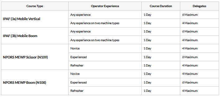 NPORS - We can also offer NPORS N108 and N109 mobile platforms training. See below for further details about the courses.