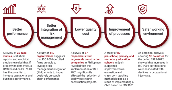 Ever since its initial publication, ISO 9001 has been the most recognized and widely used management system standard. A QMS based on ISO 9001 enables organizations to ensure success in the long term. In addition, a certified QMS provides additional assurance to customers and business associates, which further improves the business of an organization.